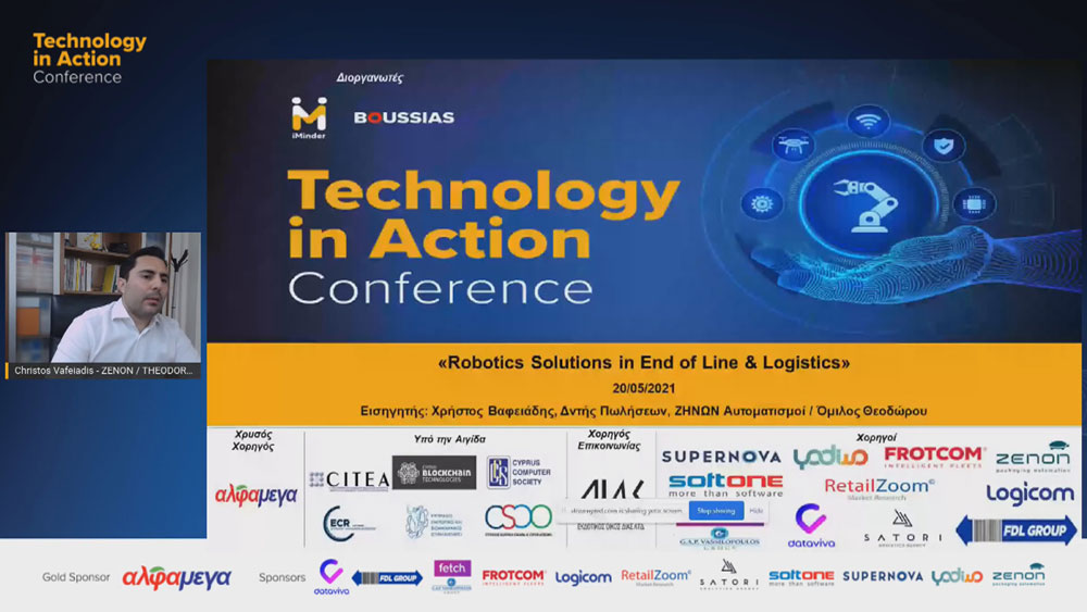 Zenon Automation SAICT participated in the online virtual conference Technology in Action 2021, organized by Boussias Communications on May 20, 2021. The purpose of the conference was to present practical applications of technology to companies and organizations, for retail stores, sales, purchasing, production, storage, distribution, human resources and data analysis.