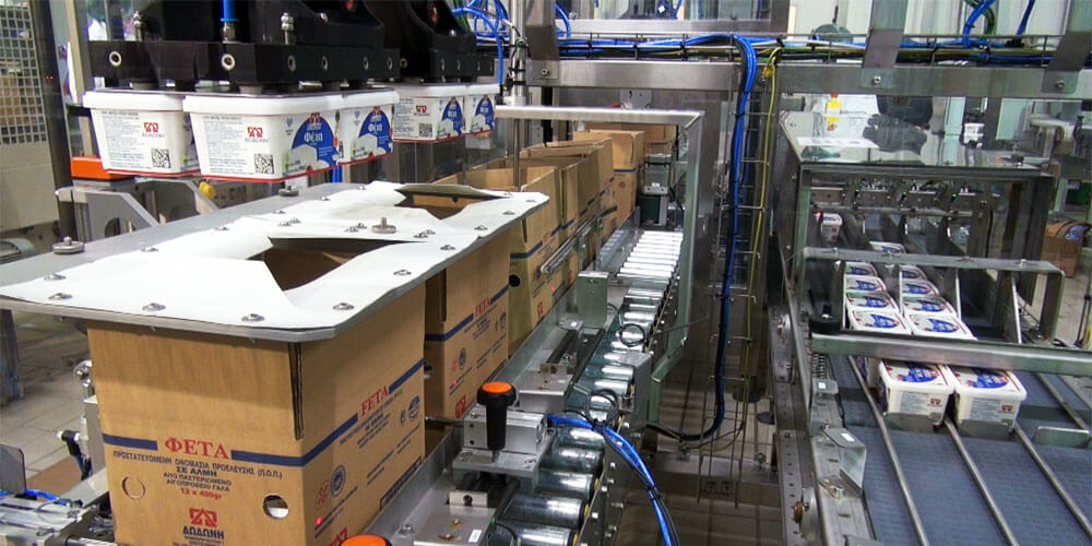 Automatic Case Packing System of Feta Containers at DODONI SA