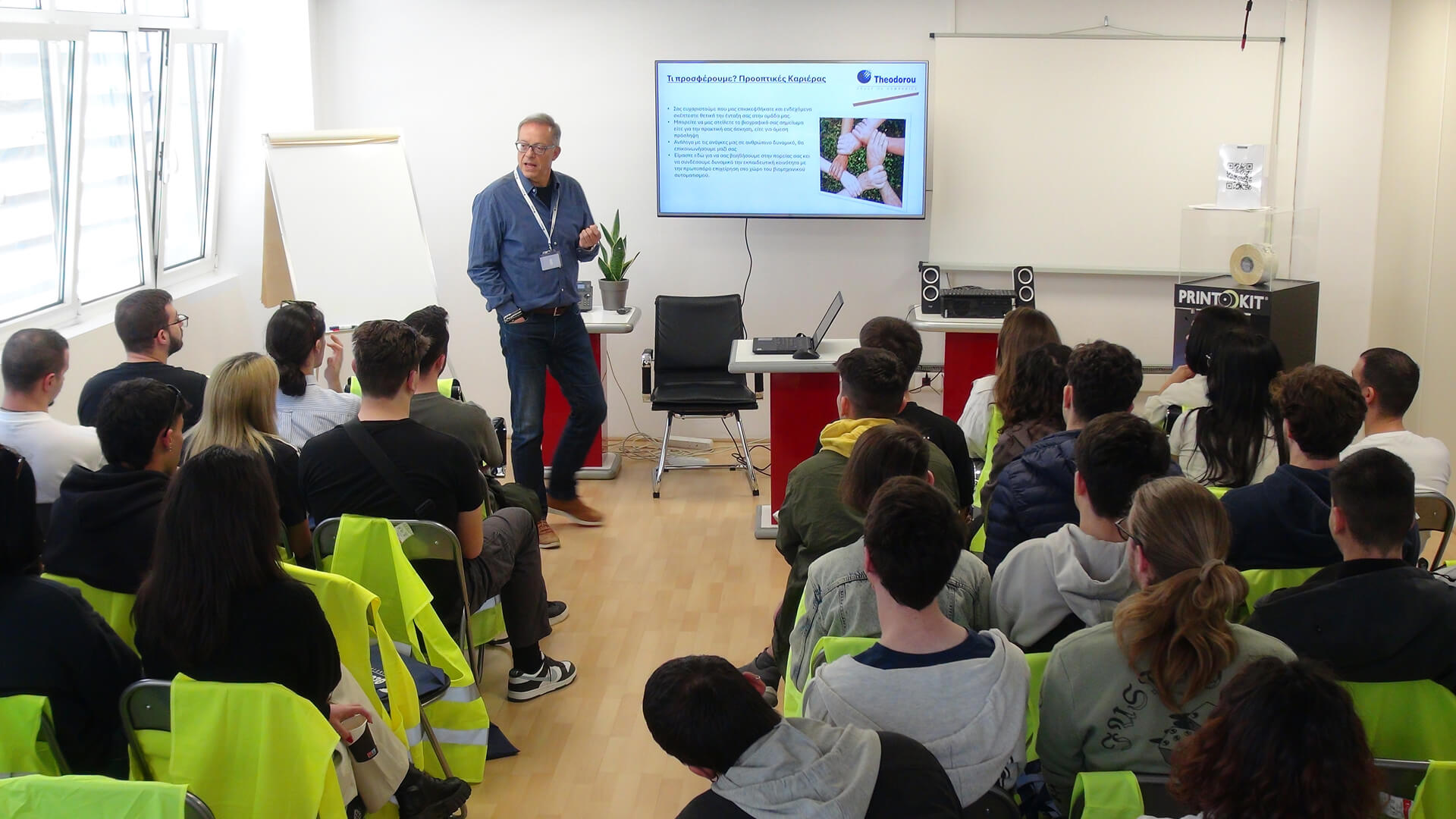 Τέλος, οι συμμετέχοντες είχαν την ευκαιρία να συνομιλήσουν με τα στελέχη του Ομίλου Θεοδώρου, να θέσουν τα ερωτήματα και τις απορίες τους και να εκδηλώσουν το ενδιαφέρον τους για μάθηση και συνεργασία με τον όμιλό μας.